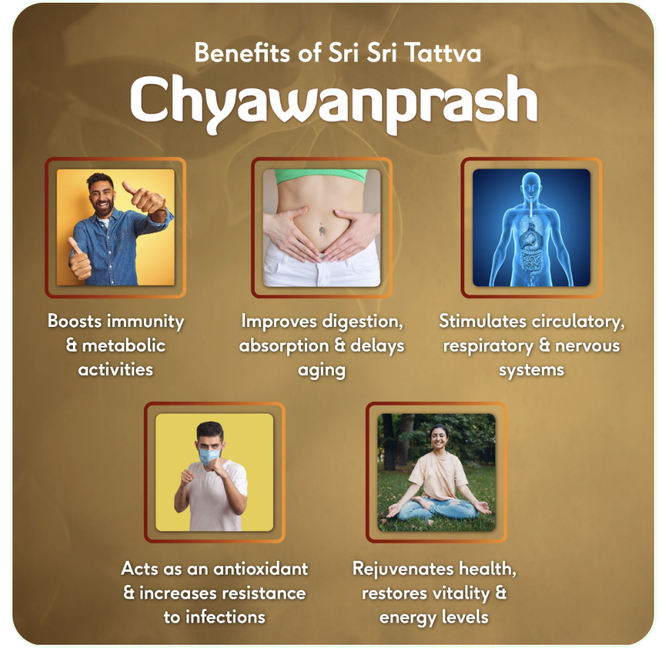 Sri Sri Tattva Chyawanprash is a high-quality, 100% organic herbal formulation made using traditional techniques from ancient rishis. It is composed of over 40 unique herbs, each known for its health benefits. This product is designed to: