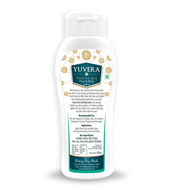 Application: Apply Yuvera Face and Body Lotion morning and evening.