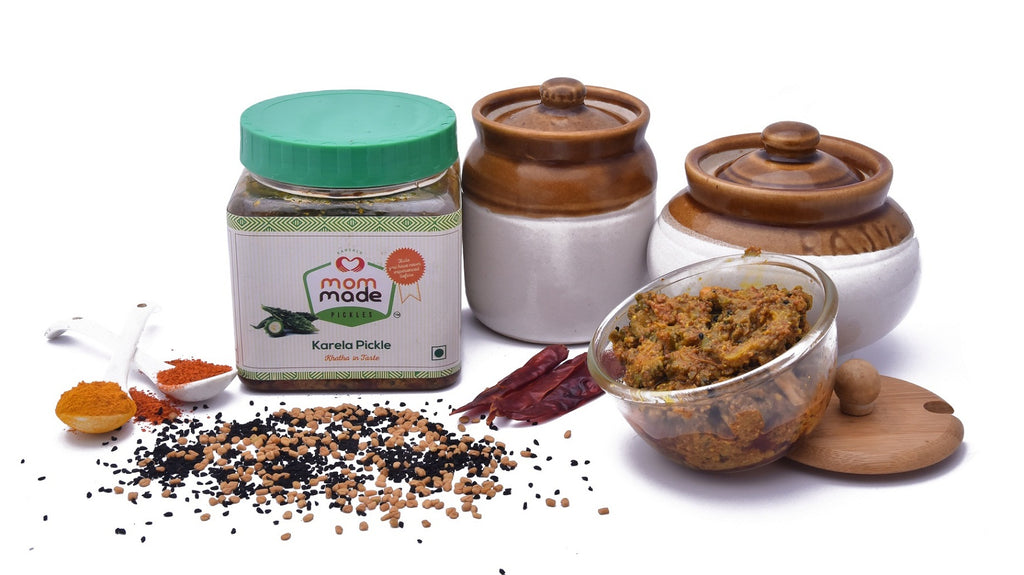 KARELE KA ACHAR Pieces of bitter gourd (KARELA) are prepared in mustard oil with handpicked spices. Now enjoy the health benefits of bitter gourd (KARELA) with a better taste.