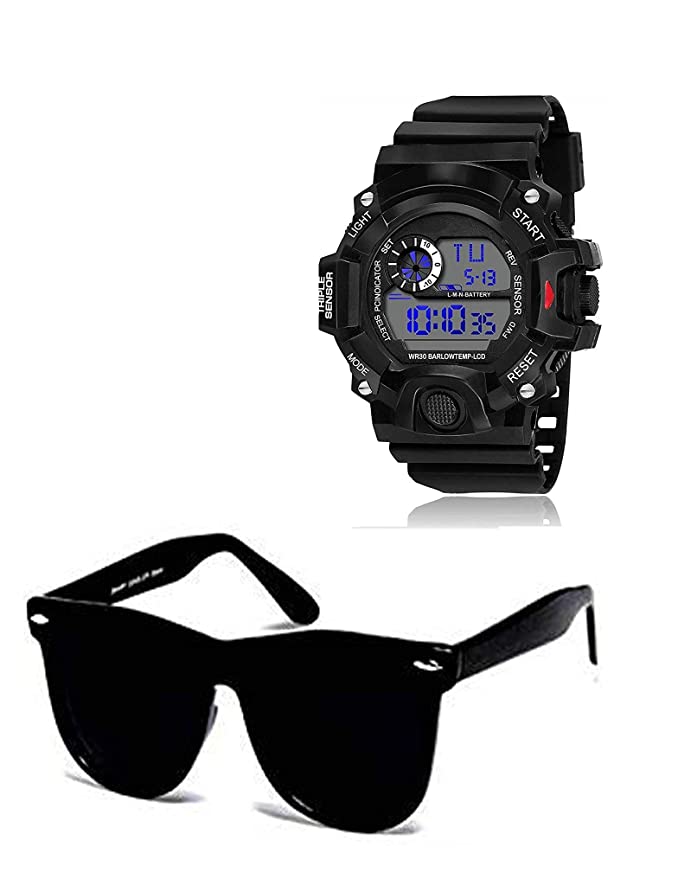Boy's Combo Pack of Black Dial Digital Watch with Black Sunglass with baseball Cap Black